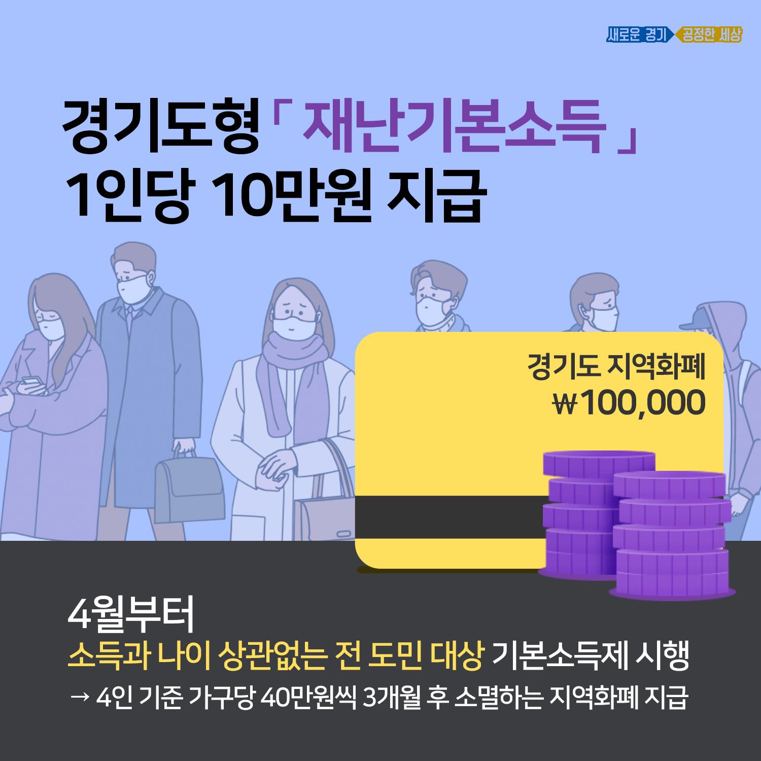 경기도가 코로나19로 위축된 경제위기를 극복하기 위해 4월부터 도민 1인당 10만 원씩 재난기본소득을 지급하기로 했다. 재난기본소득에 대한 사회적 논의가 이뤄지고 있는 가운데 소득과 나이 상관없이 전 도민을 대상으로 하는 기본소득제 시행이라는 점에서 의미가 있다.