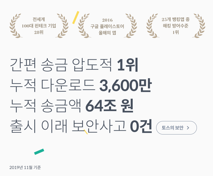 토스는 대한민국의 핀테크 스타트업인 비바리퍼블리카가 개발한 간편송금 서비스앱입니다. 공인인증서나 보안카드, OTP 등이 없이도 쉽고 빠르게 송금이 가능하다는 것이 장점입니다. 그리고 자체적으로 리워드앱의 기능도 있습니다. 퀴즈를 풀면 보상해주는 행운퀴즈가 유명하죠? 포털 검색순위에 오를 정도로 파급력이 있어 보입니다. 그리고, 만보기 등의 부가적인 보상도 가능하여 리워드앱으로도 충분한 메리트가 있어보입니다.